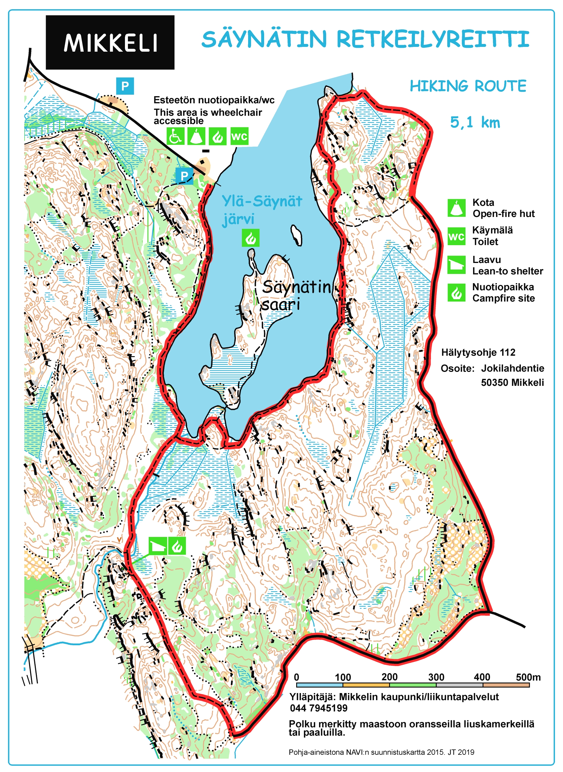 Säynätin retkeilyreitin kartta